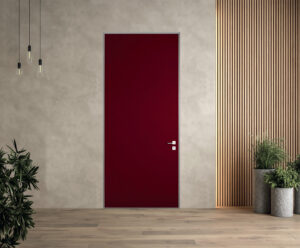 Pannello interno liscio laccato opaco Plutone bordeaux NCS S 5040-R10B, da 7mm. Maniglia interna G66 cromo satinato.