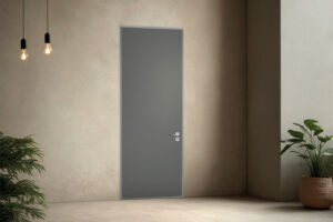 Pannello interno liscio laminato opaco LT8 grigio, da 7mm. Maniglia interna G66 cromo satinato.
