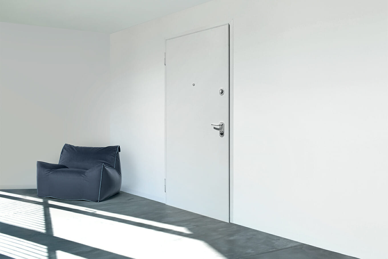Cylinder lock with Basic anti-drill cylinder (class 1), with internal knob, protected by anti-drill and anti-pipe defender (class 4).