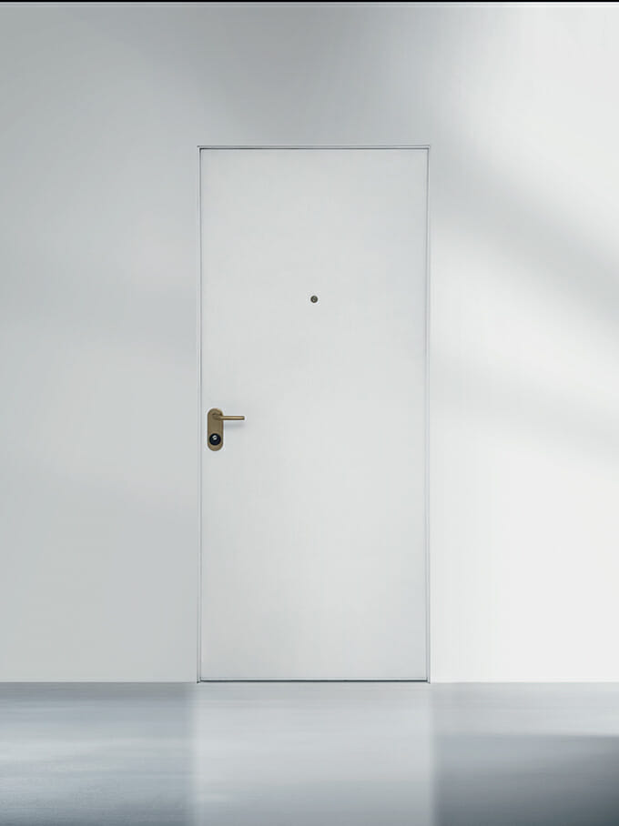 The Basic hinge can be adjusted on 2 axes (height and width) and allows up to 180° opening of the door. Visible hinges, lacquered with the same colour of the frame on Junior model, and visible hinges with white or brown hinge cover caps on Basic model.