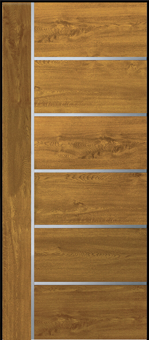 Lisci, incisi, con inserti, bugnati e finestrati in alluminio impiallacciato in PVC-renolit o verniciati legno, supportati in pirall; per esterni.