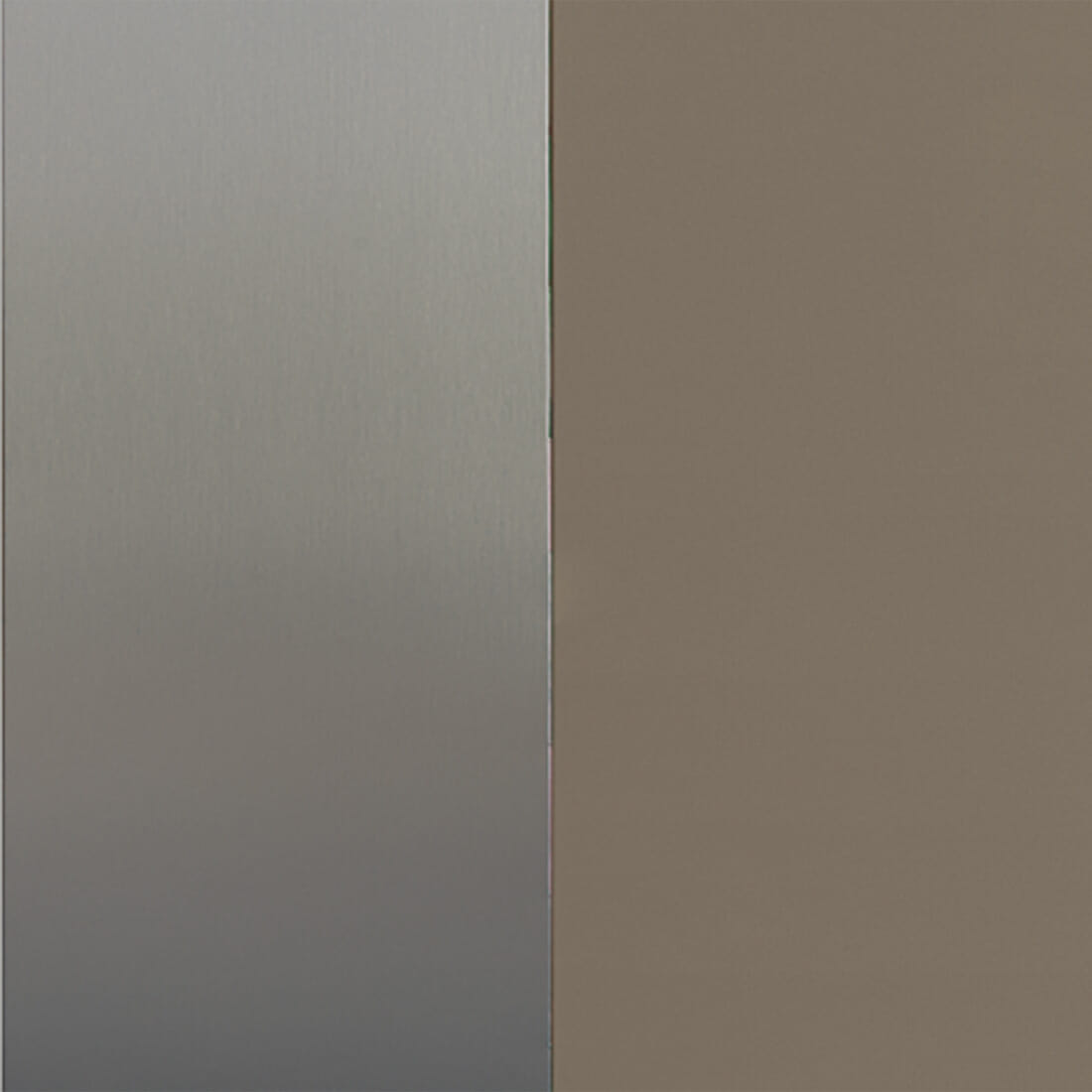 Con fascia/fasce in acciaio da 10 o 15/10 incassata su pannello: in mdf laccato (opaco – 20 gloss), da 7mm per interni o da 16mm per esterni protetti; in okoumè laccato (opaco – 20 gloss), da 7mm per esterni protetti o da 16mm per esterni.
