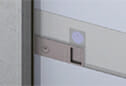 - Poignée intérieure et poignée extérieure fixe, spécifiques pour ce modèle, encastrées sur les panneaux, laquées finition aluminium.