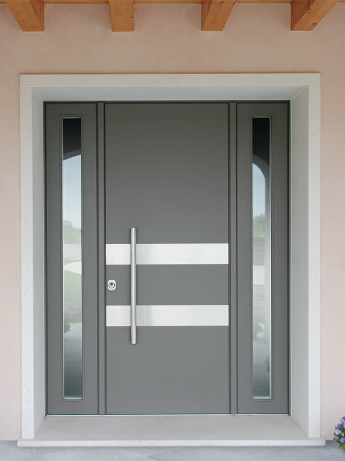 16 毫米 Strip 系列奥古曼木配饰磨 砂不锈钢带门板 (cod. 4203), RAL 7039 色漆,透明玻璃。M1磨 砂钢质固定长把手。